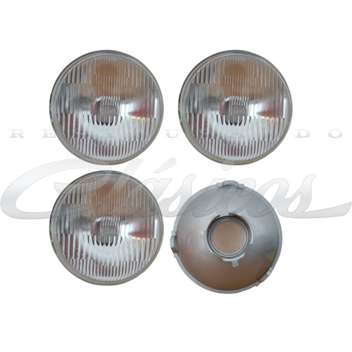 JUEGO DE 4 FAROS DE FOCO INTERCAMBIABLE, TOTALMENTE NUEVOS, PANTALLA DE CRISTAL, ENTRADA PARA FOCO H4 ( NO INCLUIDOS.)